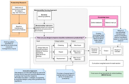By selecting the appropriate clauses from the checklist, professionals may readily derive, customise, and validate their own Maintainable Design Appraisal System (MDAS) according to their specific needs, with assigned weighted additives for their criticality used to compute a cumulative MDAS score [25,26] signifying a realistic and effective indicator of maintainability. An example of one such formulation is illustrated in Figure 5.