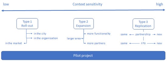 One of the most descriptive models to capture the processes of scaling up smart-city solutions is the one suggested by the Dutch urban researcher Willem van Winden []. He proposed a clear distinction between three types of upscaling: roll-out, expansion, and replication (see Table 1).