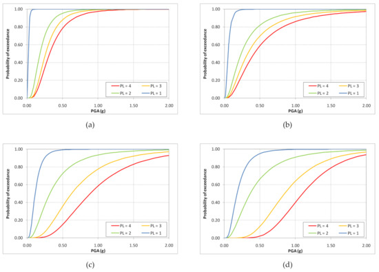 In order to obtain a brief and easy-to-understand application of this work, only a few details and results are reported. Lastly, the fragility curves are built using a common statistical curve fitting approach; the resulting fragility curves are shown in Figure 8.