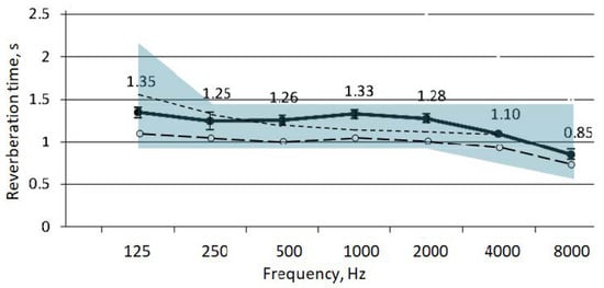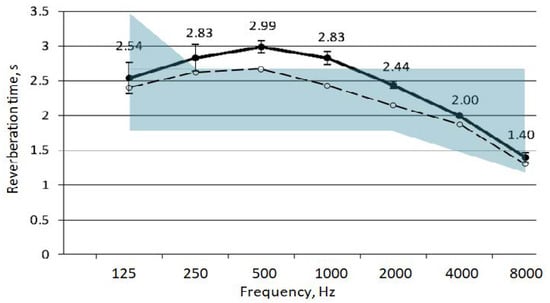 Figure 8). This is a common practice to avoid audience noises that affect the measurement result. The influence of the audience on the acoustics of a room is usually taken into account by calculation. An estimate of the audience’s influence on the reverberation time using a statistical method (the so-called Sabine method) is shown in