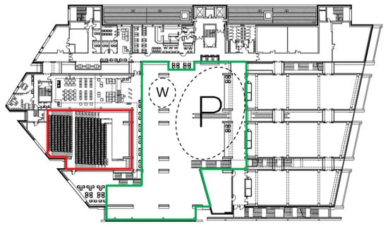 Dimensions of the multi-purpose hall—length × width × height—30.5 × 20.7 × 17.6 m; stage—length × width—15.3 × 9.1 m; floor area—483 m