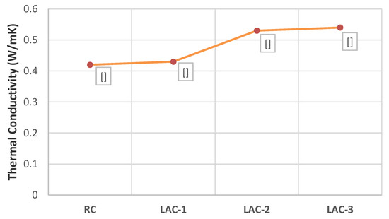Figure 13 represents the results of thermal conductivity of the lightweight cementitious composite specimens. Figure 14 shows an inverse relationship between the microstructural homogeneity (as measured by the ultrasonic pulse velocity measurements) and the thermal conductivity for the lightweight mixes. There were no significant differences between the specimens in terms of the measured thermal conductivity values, and all the lightweight specimens tested exhibited relatively low thermal conductivity values (lower than 0.55 Wm/K).