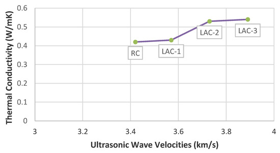 The thermal conductivity vs. the ultrasonic velocities of the mixes.