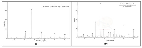 X-ray diffraction (XRD) was used to determine the crystal structures of the minerals that were present in the mixtures of TMS at the different replacement level of Portland cement. This was done using a Thermo Scientific X-ray Fluorescence (XRF) Epsilon Spectrometer (model ARL quant’x XRD, Rotkreuz, Switzerland) that was operated within a 2θ range of 3–65°, a wavelength of 1.5406 Å and an angular velocity of 3 °/min. The XRD samples were prepared by grinding the TMS and the mixture (with a pestle and a mortar) to a fine homogeneous powder. The ground powder was poured onto an aluminum specimen holder prior to XRD analysis.