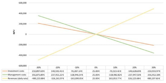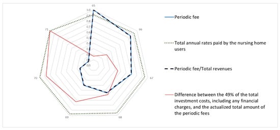 In particular, it should be noted that the revenues have been assessed taking into account the guests’ period of stay in the nursing home, assuming a 365 days/year opening and the total number of beds available equal to eighteen. The average occupation rate was obtained by consulting with the geographic information system on health and healthcare, named “Health for All” of the Italian National Statistics Institute (ISTAT) [81] with reference to the city of Rome for 2020 and it is equal to 70%.