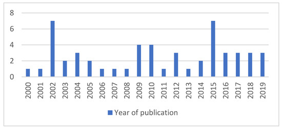 Figure 3 illustrates the years of publication of reviewed papers, spanning between 2000 to 2019. At first glance, it is apparent that project uncertainty and their deliberations started after the year 2002. An increase in the number of papers from 2009 is arguably due to the increase in the dynamic and uncertain nature of social-technical systems such as construction.