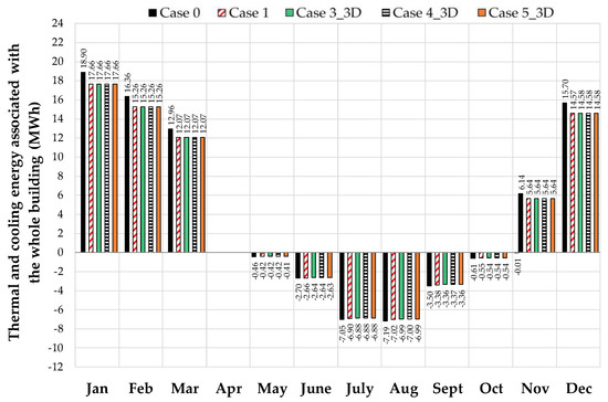 - the retrofit actions where the plastic and composite polymers materials are used as a second-skin layer (Cases 2–5 and Cases 3_3D–5_5D, see Table 3) allow for a slight performance improvement with respect to those realized with a conventional second-skin material (Case 1), thanks to a reduction in the space cooling energy demand ranging from 31 kWh (Case 4) and 120 kWh (Case 5_3D);