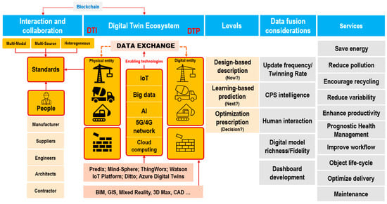 Schematic of the DT, including different dimensions of the DT. A shared DT between stakeholders such as manufacturers and construction contractors is necessary.