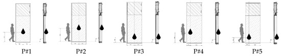 To this aim, as also in accordance with Figure 9, five different impact points were selected on the curtain wall specimen, namely represented by:
