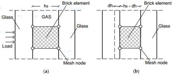 As known, the gas cavity represents a key parameter for insulated glass units, given that it is notoriously responsible of “load sharing” phenomena for the involved glass panels [45,46,47]. To simulate this interaction for the glass units, various numerical approaches can be found in the literature, and most of them are based on fluid interactions in the cavity, so as to include ideal gas formulations: