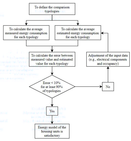 The validity of the energy models can be reached through a calibration process, which consists of mainly three steps: comparison between the comparison of simulated data and measured data, identification of the error causes, and adjustment of input data (e.g., the physical parameter of the buildings, occupancy behavior, or schedule and rated power of equipment) [21].