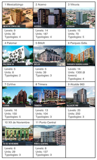 3.4. Selected Study Cases. Eleven New Housing Developments in Guadalajara Downtown