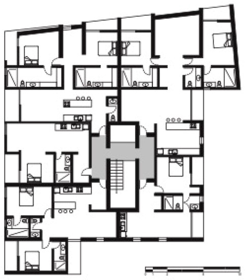 In terms of innovation both from a management and design point of view, co-housing represents an important tradition and contribution [38], which has been associated with gender perspective in architecture and urban studies [33,39]. In fact, co-housing is rooted in feminist theories in the United States where women, as early as in 1868, demanded for more inclusive housing and cities, where the private and the public spheres were not separate and the tasks of reproduction could be considered as worthy and important as traditional economic production [37,40]. The feminists’ claim towards a more inclusive housing and built environment reached northern Europe, where the possibility of collectivizing re-productive work tasks, such as cooking and children care, started to be explored in the XX century [37]. In Sweden, Sven Markelius and Alva Myrdal envisioned co-housing as a tool that allows women to combine the spheres of production and reproduction [37,39]. Co-housing experiences are numerous in Europe, and the deep-rooted tradition of the North is recently reaching the South. The Spanish experience is significant, especially in Madrid and Barcelona (with the Ada Colau public administration), where experiences such as La Borda were born with the aim to offer affordable housing options together with non-speculative urban development [41,42]. As pointed out by De Jorge–Huertas [42] in a comparative study between two co-housing buildings, shared spaces (both on the ground floor or distributed on all the floorplans) are fundamental in order for the users to develop a fuller and more sustainable daily life, and thus is a flexible distribution that permits adaptation over time, according to changing needs. These spatial characteristics, together with the implementation of appropriate collaborative housing policies and tenants participation in all the process, define an innovative housing model [42]. It stays clear that, in Latin America, this is a route that has not yet been explored.