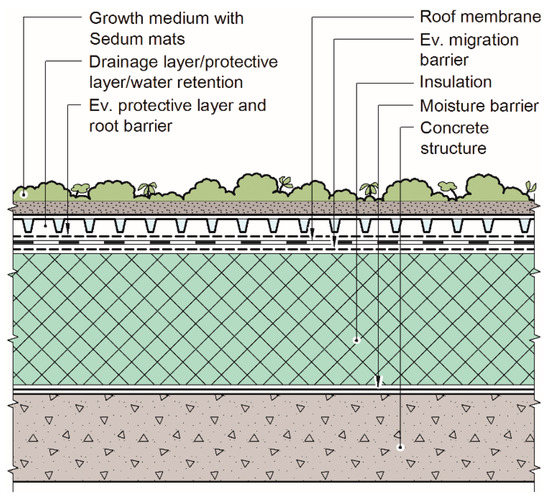 - Breuning, J. The Sky Is Falling: A Critique of Failed Sloped Extensive Green Roofs. Available online: http://www.greenrooftechnology.com/green-roof-blog/the_sky_is_falling_a_critique_of_failed_sloped_extensive_green_roofs (accessed on 3 February 2021).