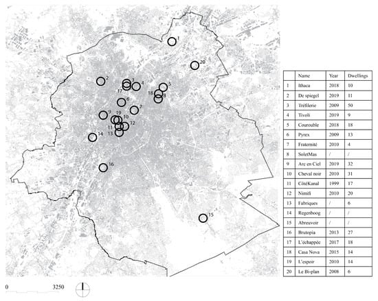 Co-housing projects in the Brussels-Capital region (drawn by the authors, 2019).