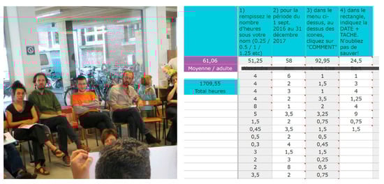 Project elaboration meeting and timesheet (http://www.echappee.collectifs.net, accessed on 11 June 2019, source: Matthieu Liétart, 2013).