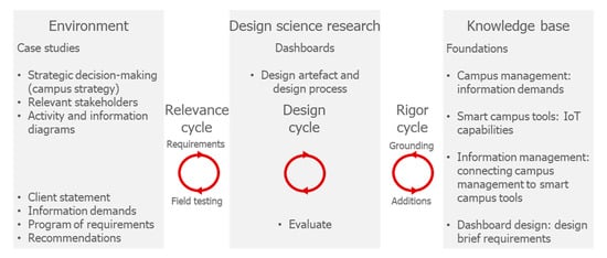 In order to answer the main research question, design research was conducted as described in Van Aken [12,13], Hevner et al. [14] and Hevner [15]: prototypical dashboards were designed for specific campus questions and the design process and the performance of the design results was studied.