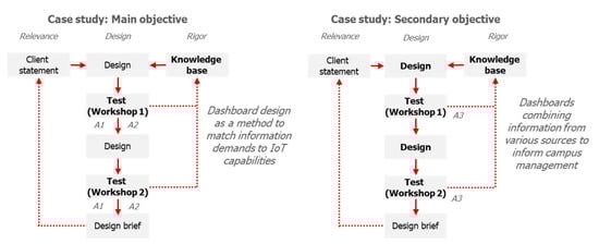 Design research is chosen as the strategy to answer the main research question, as the subject calls for an operational exploration of the fundamental principles and conditions of dashboards that contain information from the IoT. The dashboard designs presented in this paper express indicators and relations relevant to campus management, which are first designed, and then refined and tested together with users. The novelty of this research lies in this use of design research. To the best of the authors’ knowledge, there is no research that fulfils the following conditions: (a) it discusses dashboard prototyping as a needs analysis method for IoT applications in campus management (see Section 2.2), and (b) the dashboard designs report a combination of indicators from the IoT and legacy systems related to all four stakeholder perspectives in campus management (see Section 3.1).