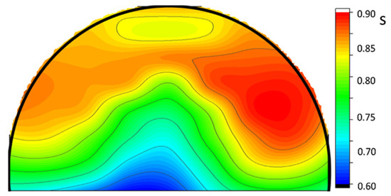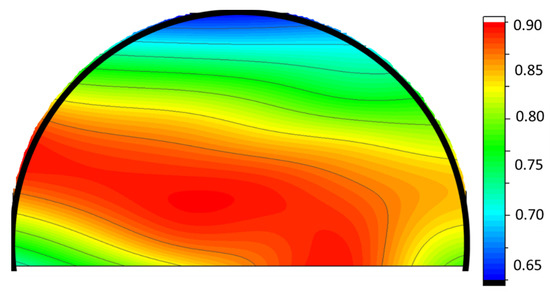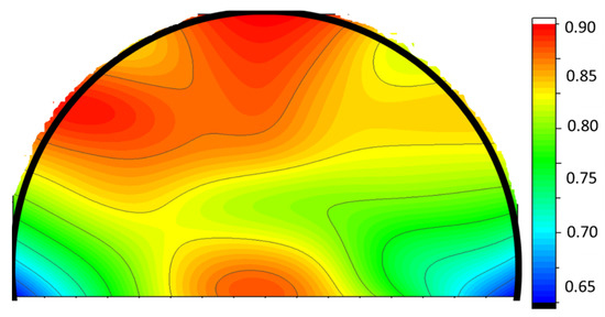 Figure 17 shows the spatial distribution of STI (speech transition index) measured values when the sound source is on the scene building, while Figure 18 shows the spatial distribution of STI (speech transition index) measured values when the sound source is in the orchestra. Generally, in open space theatres in the original configuration, the values of the STI were greater in the central area of the cavea, which is due to the geometrically symmetrical structure of the theatre. Today, the theatres are renovated, and the symmetry is not maintained, as in the case of the Roman theatre of Benevento. In fact, the cavea irregular geometry leads to effects of irregular distribution of the sound. The values of STI in both configurations are not uniform, with significant variations inside the cavea. The values of STI change between 0.90 and 0.75. The theatre has excellent performances for listening to speech. The voice quality listening changes from point to point, but in every area of the cavea, the speech comprehension is good.