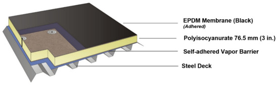 With the advent of anthropomorphic climate change caused by GHG emissions resulting in increased global temperatures there has been an increased effort to reduce GHG emissions by reducing energy consumption in the building sector and an increased demand to make building envelopes more resilient to worsening thermal conditions [1,2]. Roofs typically represent a large portion of the commercial building envelope, particularly in low-rise construction. In light of the declining energy resources concurrent with escalating energy costs, their effect on energy consumption and environmental control is very important. Therefore, when it concerns the roofing component of the building envelope the current and still most effective way of reducing the building energy demand remains to be the effective use of insulating materials, however alternative approaches including green rooftops, reflective rooftops “cool roofs,” smart buildings, and others have shown promise as supplementary methods of reducing energy consumption [3,4,5]. As far as codification systems for building construction most countries have relatively developed codes in terms of envelope performance insulating targets [6]. Most of these codes recommend using thicker layers of insulation which leads to larger volumes of low thermal conductance. In order to select the appropriate thickness of insulation, the effective operating behavior of common insulation materials needs to be properly reflected in the design procedures.