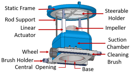 - Kim, T.Y.; Kim, J.H.; Seo, K.C.; Kim, H.M.; Lee, G.U.; Kim, J.W.; Kim, H.S. Design and control of a cleaning unit for a novel wall-climbing robot. In Applied Mechanics and Materials; Trans Tech Publications Ltd.: Schwyz, Switzerland, 2014; Volume 541, pp. 1092–1096. [Google Scholar]