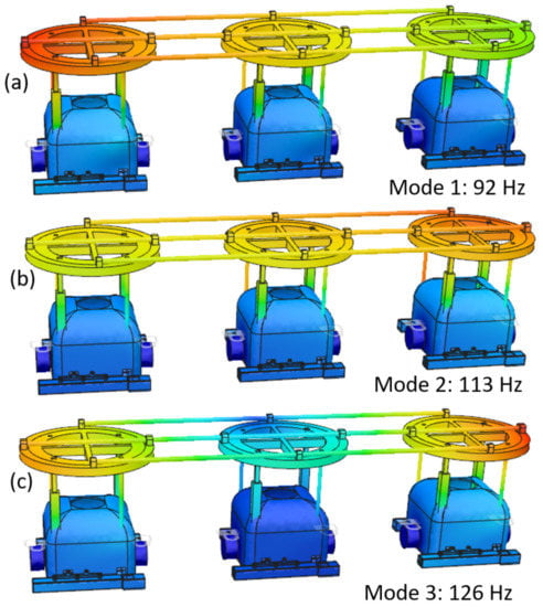(a) First, (b) second, and (c) third mode shape of the platform.