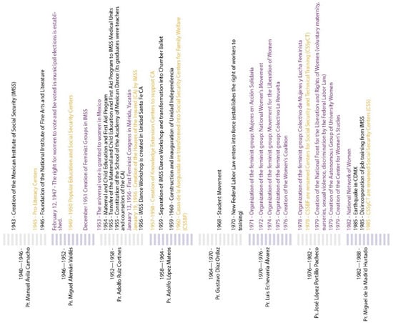 The historical evolution of the Casas de la Asegurada is closely linked to presidential and political agendas, the evolution of the IMSS, and changes in labor legislation, as shown below (