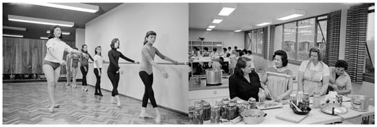 Figure 11. The inclusion of childcare areas and safe spaces for children allowed women to engage in various group activities, generating strong social cohesion. Moreover, the adequate facilities enabled the serious and formal development of these activities, which in some cases were so successful that they allowed the women’s groups to practice them professionally, obtaining remuneration that could lay some foundations towards their economic freedom. Such is the case of the Dance Workshop established in the Casa de la Asegurada of the Unidad Santa Fe housing complex in 1957 which in 1958, became Mexico’s Chamber Ballet. [