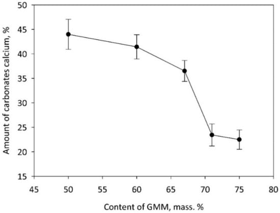 | Mineral | “Quicklime–GMM” Ratio (Content of GMM, wt.%) |