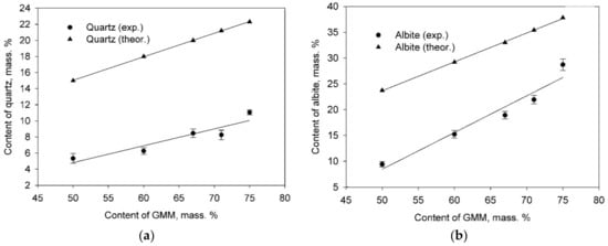 Figure 7 demonstrates variation in concentrations of quartz and albite, taking into account different concentrations of GMM in the binding system.