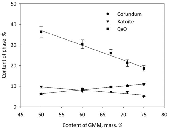 It is necessary to note that the dynamics of development of the amount of katoite were inversely proportional to corundum: with an increase in the dosage of GMM and, accordingly, an increase in the amount of corundum, a decrease in the number of katoite in the system was observed (