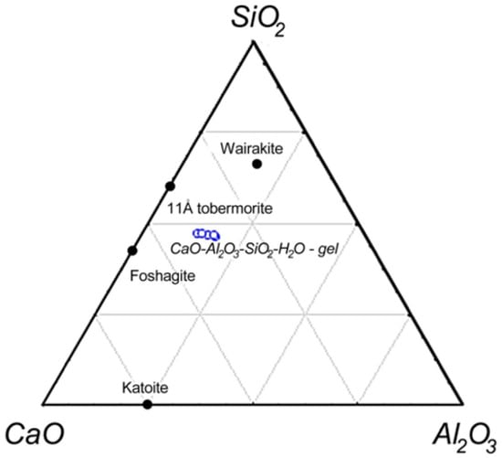 Figure 12 show the CASH gel composition. Since the CASH gel is a four-component formation, its composition can be represented as a point in the quaternary system CaO–Al