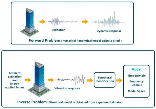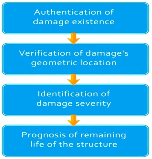 Damage detection is an essential consideration in SHM; therefore, a few techniques have been adopted to predict damage such as ambient vibrations. For example, the San Pedro Apostol church was monitored through the SHM technique for both short-term and long-term monitoring to find the variations in temperature and humidity [1]. SHM can be used not only for modern buildings but also for heritage buildings as well, so that historic structures, such as those of the Ottoman Empire, can be monitored using non-destructive techniques (NDTs) to predict damage and observe the current health status of buildings [2,3]. Seismic or any excess acceleration in buildings causes heavy damage to the structure such that the buildings undergo dynamic loading, so dynamic analysis should be carried out using SHM techniques; thus, the forever berated transfer function has been implemented to predict the action of seismic waves in buildings [4]. To diagnose the buildings’ damage, by adopting a neural network (NN) approach, both damage and undamaged areas are assessed by applying artificial free vibration to forecast the range and level of damage due to dynamic loading conditions [5].