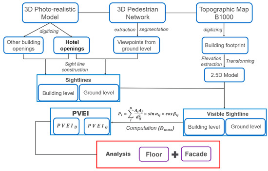 Other elements, including vertical angle and visual distance (3D length of the sightline), can be created and directly imported together with α into the mathematical model for the final computation. Finally, the PVEIs of the sample building were calculated using the proposed model.