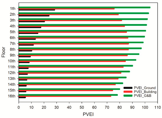 PVEI of all the floors with respect to the ground level, building level, and a combination of the two levels.