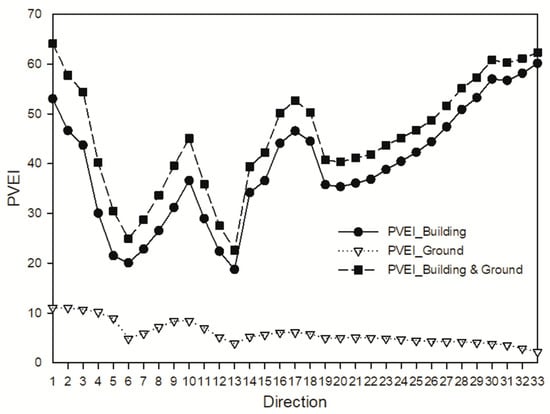 PVEI of the building direction in columns with respect to the ground level, building level, and a combination of the two levels.