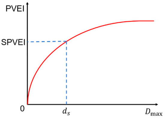 Therefore, it is of the highest importance to ensure all the openings of buildings (especially for residences and hotels) achieve an acceptable level of visual privacy, which refers to the Standard Potential Visual Exposure Index (SPVEI), which should be designed by architects and urban planners. As shown in Figure 16, the value of the PVEI between 0 and the SPVEI refers to a low preservation of the visual privacy of an opening, while the value of the PVEI that is higher than the SPVEI represents an acceptable level of visual privacy. It is worth noting that the same SPVEI value for different openings can correspond to the different selections of . Moreover, SPVEI may be varied, since the desired visual privacy differs according to the culture, region, and functionality of buildings. Consequently, the proposed mathematical function can be used as a basic tool to quantify visual privacy, and is helpful to identify various SPVEI under certain circumstances.