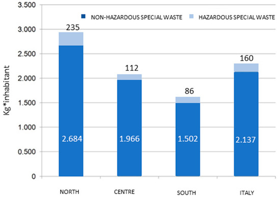 Special waste production in the main parts of Italy. Source: Own elaboration from ISPRA data.
