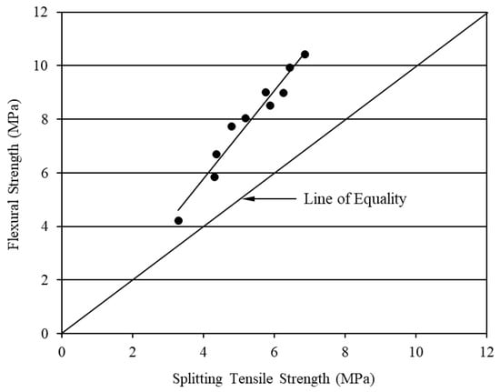 Flexural strength versus splitting tensile strength of CFRM composite.