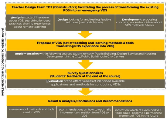 The structure of the redesign process of transforming the existing PDS into an emergency VDS, implemented according to ADDIE-model.