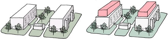 When the roof shape of buildings changes, height increases, and the number of floors of buildings increases, the terms additional floor, roof, or elevation construction are used (Figure 2). The additional floor construction is one of the ways to improve the property by additional construction, and the project may require a change in the city plan to be completed [29] and in the case of Tampere, Finland they mainly have [30].