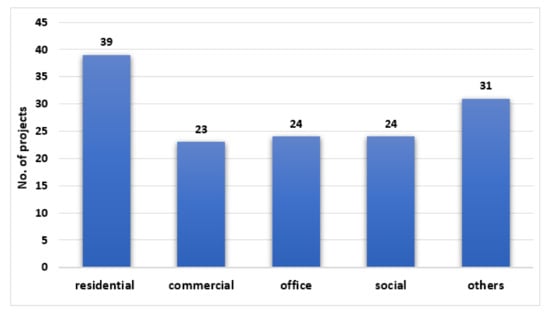 This section presents the commonly involved building types for installation of energy systems to supply local energy demand and also to generate excess energy to increase energy flexibility according to the specific project goals. Figure 6 illustrates that the residential sector appears to be predominantly used in the majority of the projects to install energy systems on available roof areas as it is being the primary focus for 39 projects. Office and social buildings are identified to be the main focus in around 24 projects and also followed by commercial buildings spaces for more than 20 projects. Other types of buildings such as institutional, cultural etc., are utilized as secondary spaces for implementing the energy systems.