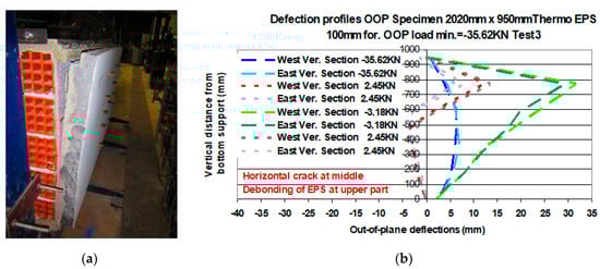 4.4. Masonry Wallet with an Expanded Polystyrene (EPS) Facade of 100 mm Thickness Subjected to Out-of-Plane Flexure (WOPE100A)