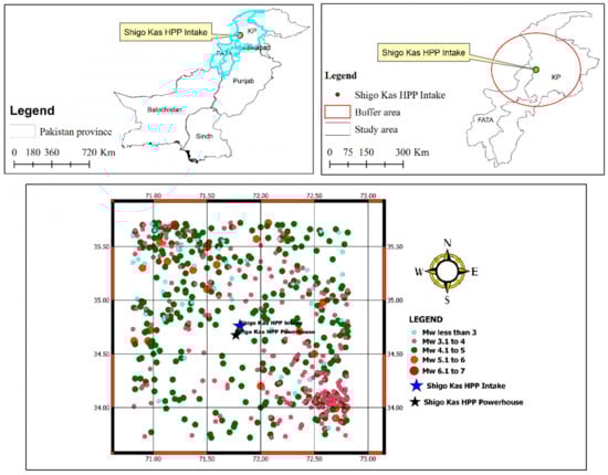 Pakistan faces an acute shortage of energy, and with the passage of time, the gap between demand and deliverable capacity at national power stations is widening. The shortage of energy can be minimized by exploring small and medium hydroelectric projects in the country. There is abundant untapped potential for hydroelectric energy in Pakistan, which needs to be harnessed. Pakistan is endowed with a hydroelectric potential of more than 40,000 MW, most of which lies in the province Khyber Pakhtunkhwa [1]. The Shigo Kas hydropower project (HPP) is a feasible and economical source of energy [2], having an installed capacity of 102 MW. This project was identified by the German Technical Cooperation (GTZ) in the 1990s. However, the study stopped at a preliminary level. This study is undertaken to perform the seismic hazard analysis (SHA) of the Shigo Kas HPP area based on diffuse areal zones (the zones have similar seismic potentials within their region). This technique is beneficial when faults are not well-characterized and it is not possible to correlate them with earthquake hypocenters in areas [3,4].