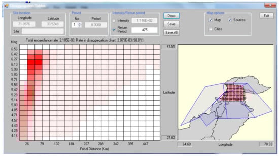 The damages due to earthquakes can be minimized by the characterization of source, geology and geotechnical conditions, and structural resistance. SHA is used for the estimation of strong ground motion parameters, such as peak ground acceleration (PGA), peak ground velocity (PGV), and peak ground displacement (PGD) [5,6,7,8,9]. These parameters are used for the seismic-resistant design of structures [10]. Earthquakes are a natural phenomenon that cannot be controlled or predicted; however, the vulnerability of structures can be significantly minimized by constructing seismic-resistant structures [11,12,13]. Seismic hazard evaluation enables us to predict future ground motion in a potential area, which can be used to design new structures and retrofit existing structures [14,15].
