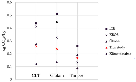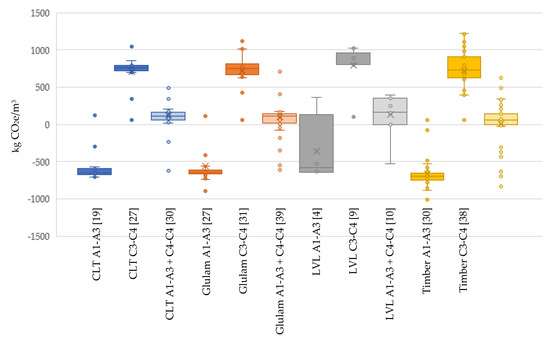 - Dias, A.; Silvestre, J.; de Brito, J. Comparison of the environmental and structural performance of solid and glued laminated timber products based on EPDs. Structures 2020, 26, 128–138. [Google Scholar] [CrossRef]