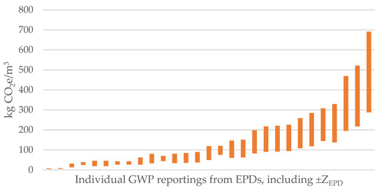 - Waldman, B.; Huang, M.; Simonen, K. Embodied carbon in construction materials: A framework for quantifying data quality in EPDs. Build. Cities 2020, 1, 625–636. [Google Scholar] [CrossRef]