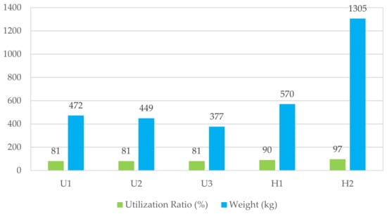 Considering the aforementioned explanations, U3 is the optimal PSS, having low utilization ratio and lowest weight as 81% and 377 kg, respectively.