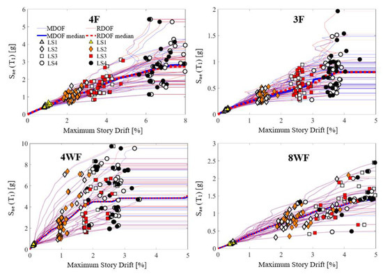 4.2. Incremental Dynamic Analysis (IDA) and Fragility Analysis