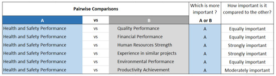 | EX.MoP | Experience and track record | Number of projects completed within last 5 years | ✓ | ✓ | ✓ | High 7 | High | Low | High | High |